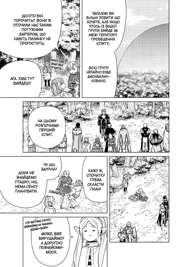 Ельфійка та її учениця мусять узяти участь в іспиті на звання чарівника першого рівня, проте опиняються в складі різних команд. Тепер завдання перетворюється не просто на тест умінь, а на випробування характеру. Адже непорозуміння між учасниками може зруйнувати все. І хто знає, які небезпечні у Фрірен супротивники?