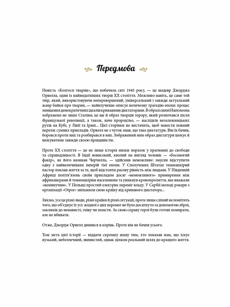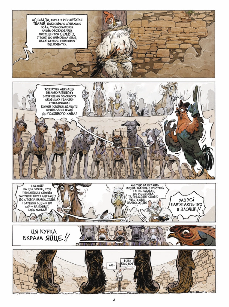 Елегантний та глибокий мальопис, який комусь нагадає «Колгосп тварин» Джорджа Орвелла, а комусь сторінки недавньої історії, перенесе у світ, де боротьба можлива, було б кому боротись…