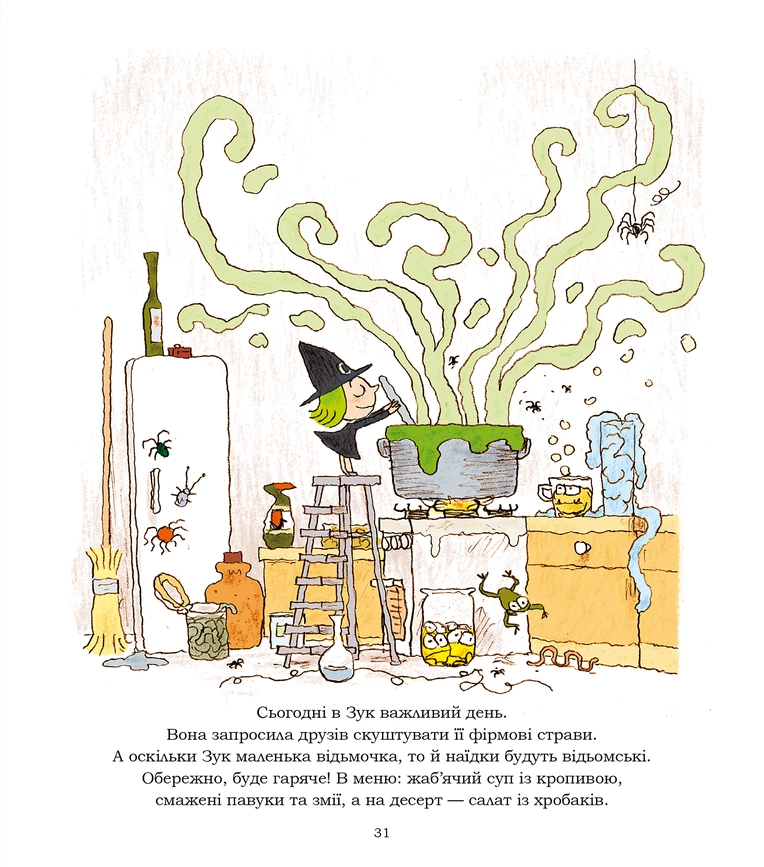 Дружити — круто! І Зук, маленька відьмочка з характером, прекрасно це розуміє. Вона любить своїх друзів і обожнює їх тішити. То перетворить їхніх батьків на маленьких цуциків, то зготує вишуканий равликовий торт із жаб’ячим слизом, то покатає на мітлі… Дружба із Зук — постійна пригода.